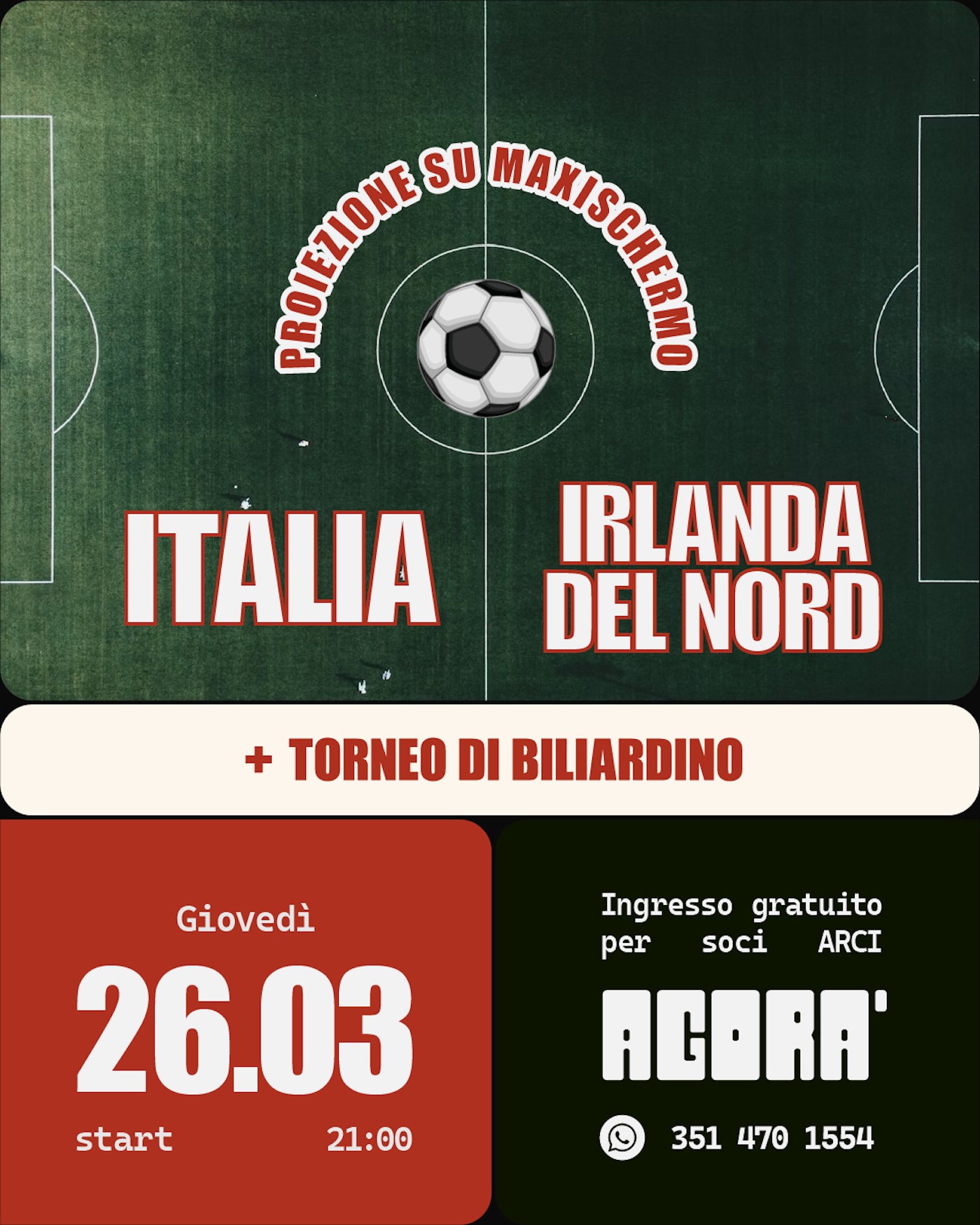 ITALIA-IRLANDA DEL NORD + TORNEO DI BILIARDINO
