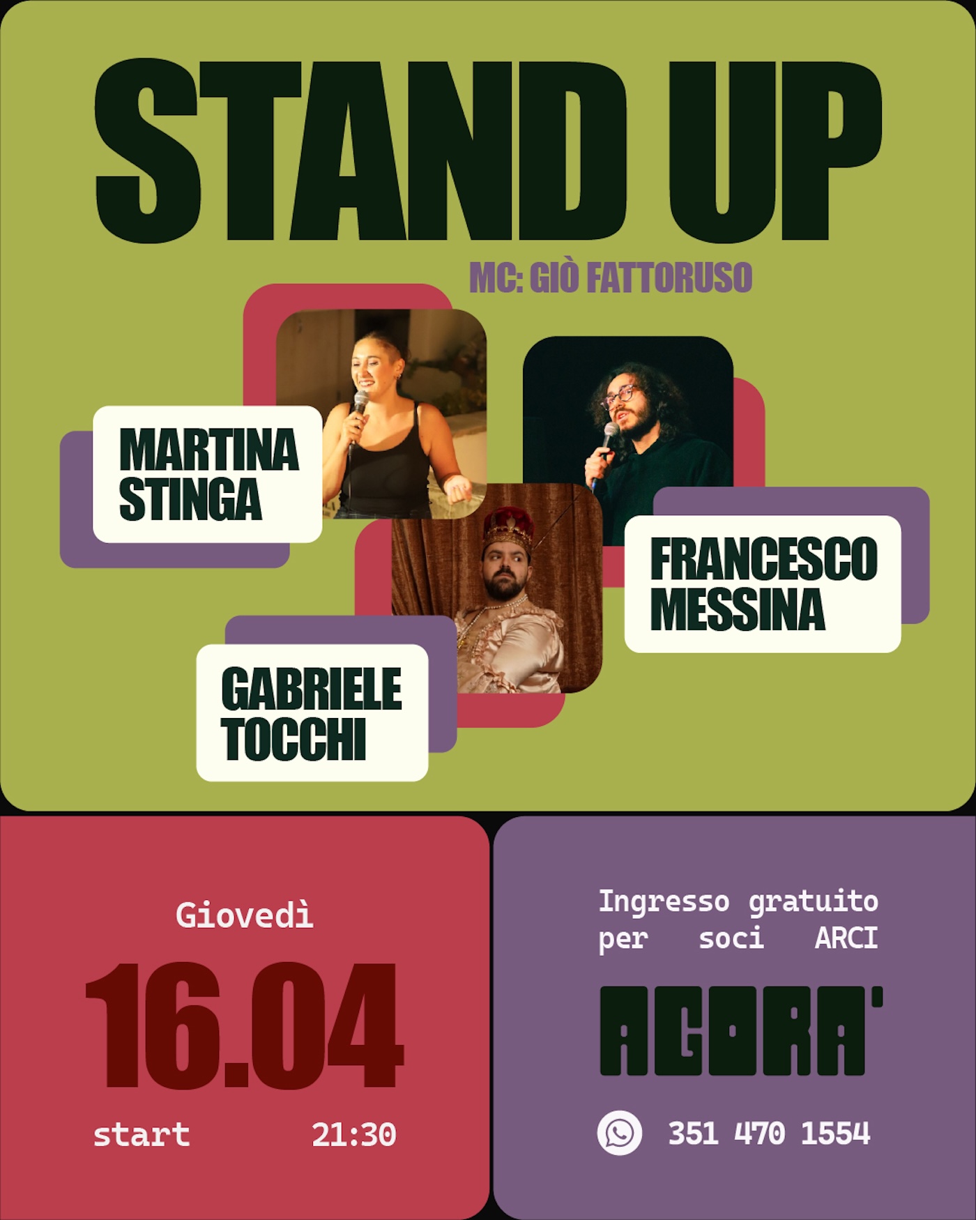 STAND UP: Martina Stinga, Gabriele Tocchi, Francesco Messina MC: Giò Fattoruso